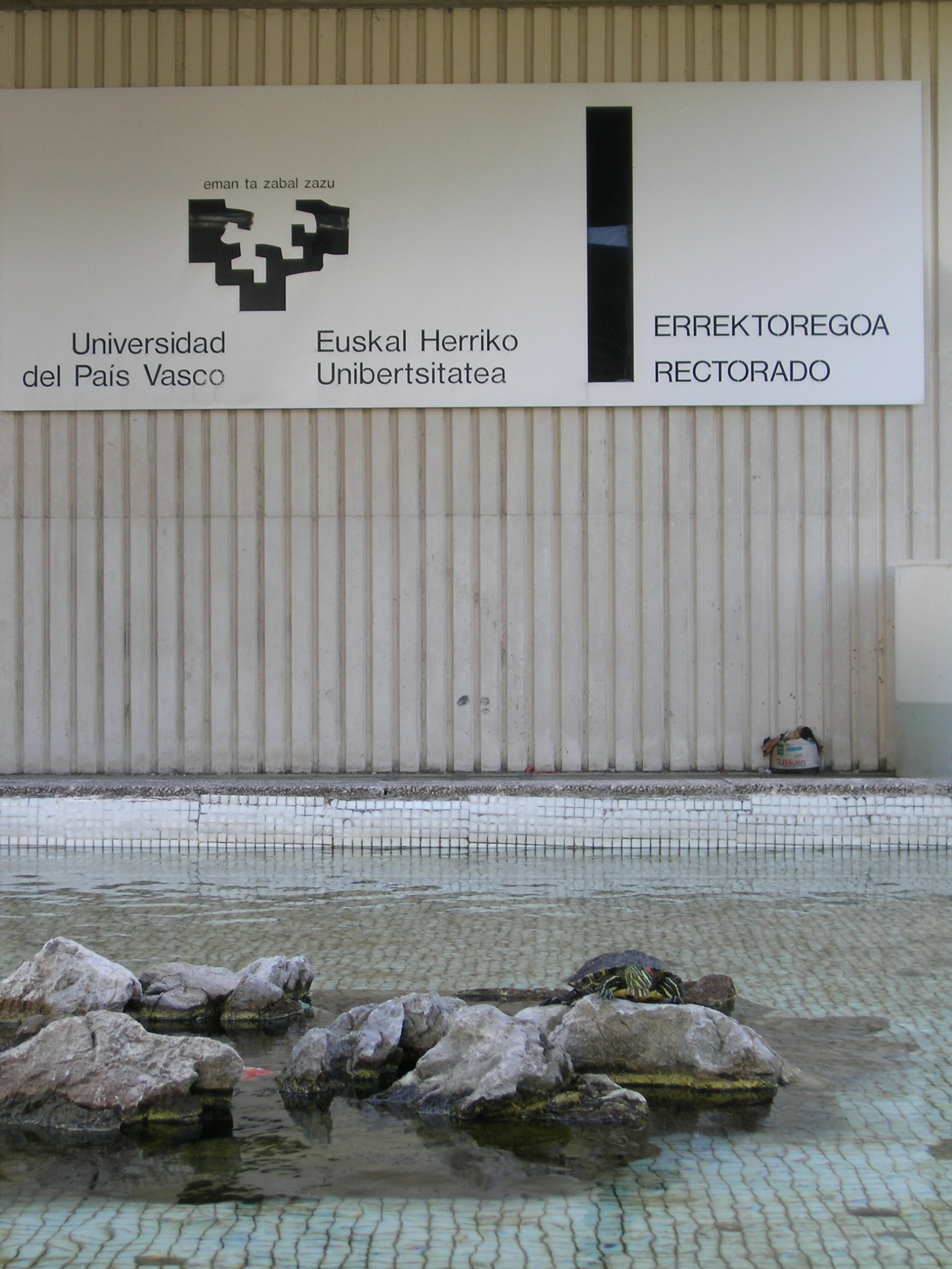 dortoka batzuek zelatatzen dute UPV-ren Leioako kanpuseko errektoretza... nor ote dabil azkarrago, dortokak ala errektoretza?