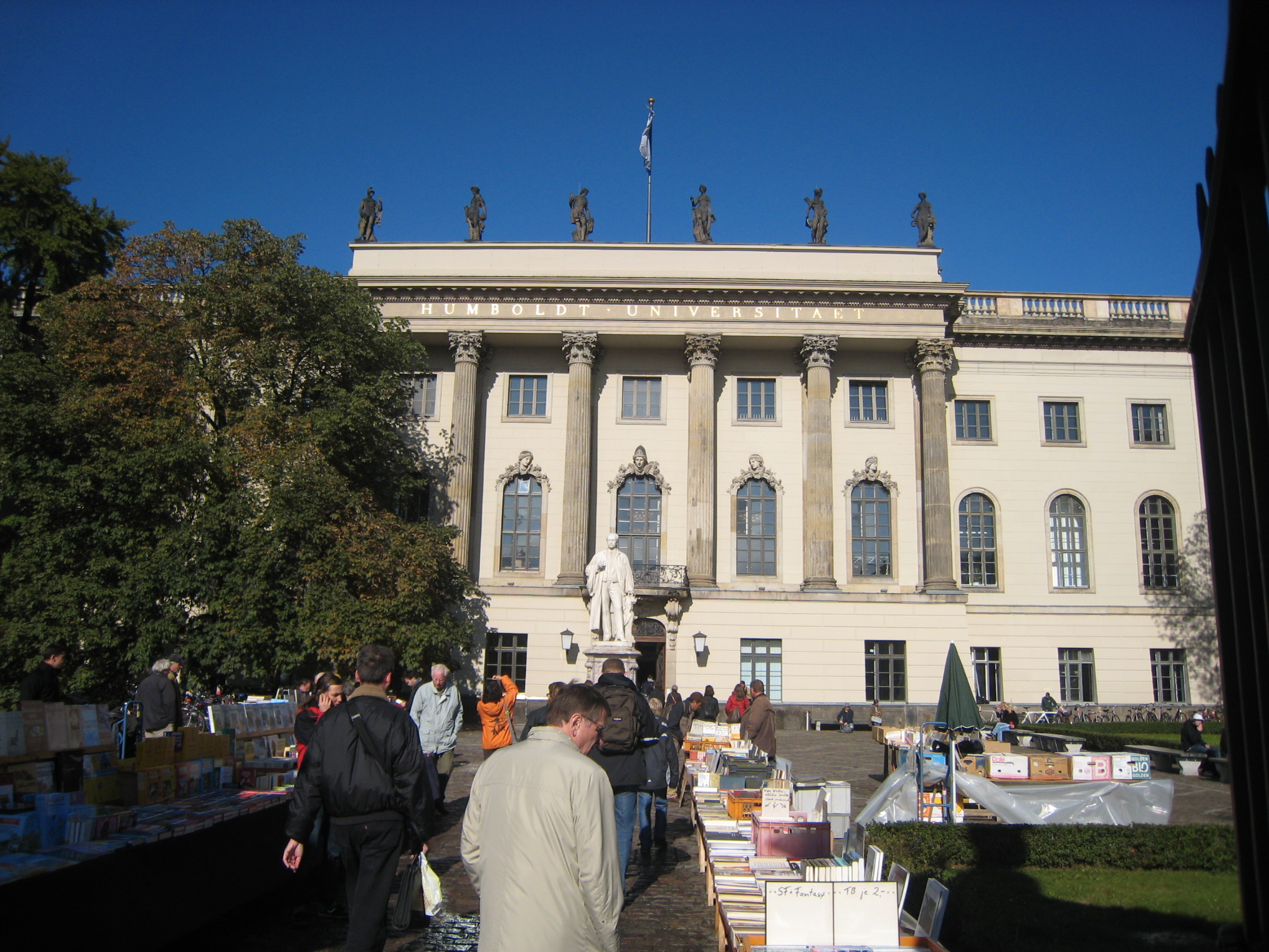 Bigarren eskuko liburuak saltzen Berlineko Humboldt Universitaet aurrean