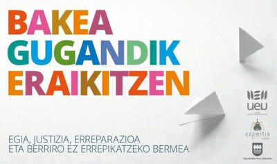 "Bakea gugandik eraikitzen. Egia, justizia, erreparazioa eta berriro ez errepikatzeko bermea" jardunaldiak antolatu ditu UEUk Azpeitiko Udalarekin eta Gipuzkoako Foru Aldundiarekin batera , bakea eraikitzeko prozesuan sakondu eta gizartea eraldatzeko proposamenak lantzeko oinarriak jarri asmoz. Horretarako, besteak beste, ondoko gaien inguruko hausnarketa kolektiboa egingo da: