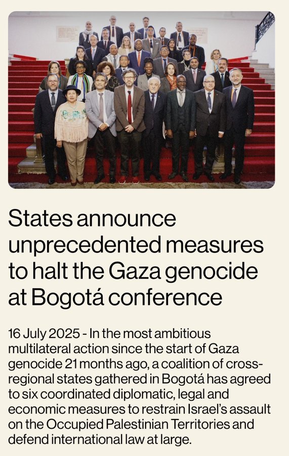 I have just retuned from Colombia, where twelve nations agreed to take unprecedented measures to stop the Gaza genocide. Together, we can end the era of Israeli impunity — and bring about justice for the Palestinian people.