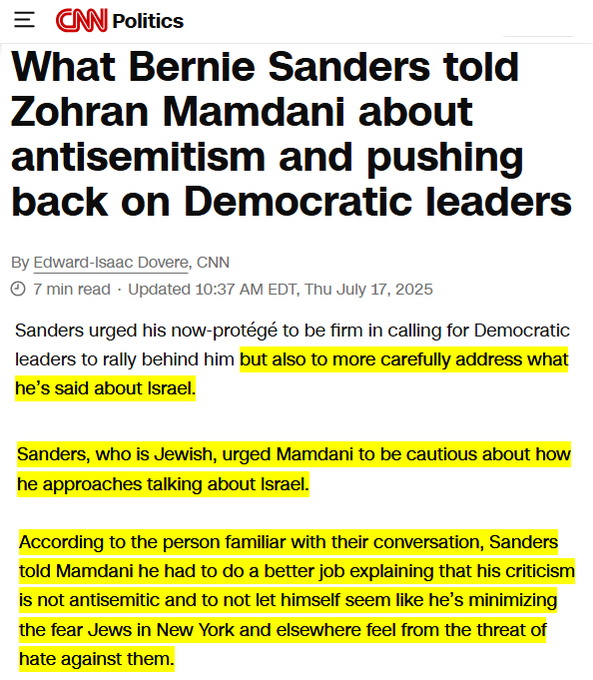 Bernie Sanders told Zohran Mamdani he is creating the appearance that he is “minimizing the fear of Jews” and he “needs to be careful” about how he talks about Israel. His sole function now is to force the entire US left to adopt his laundering of the Israeli death-cult and Zionism even though it goes against the entirety of his own base, the left in general, the overwhelming majority of democrats, and a majority of the broader public