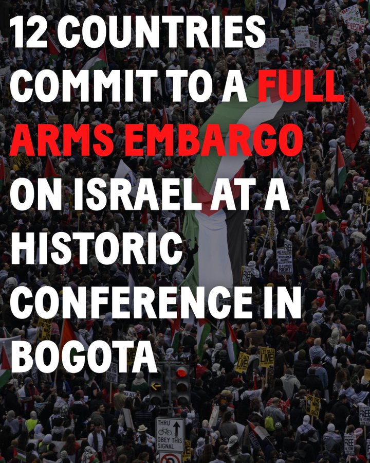 Yesterday, 12 countries announced their commitment to a full arms embargo on the Israeli government. The resolution comes out of an emergency summit in Bogota where members of the Hague Group gathered to coordinate legal and diplomatic action to counter the “climate of impunity” for Israeli war crimes that is enabled by the US and other countries.