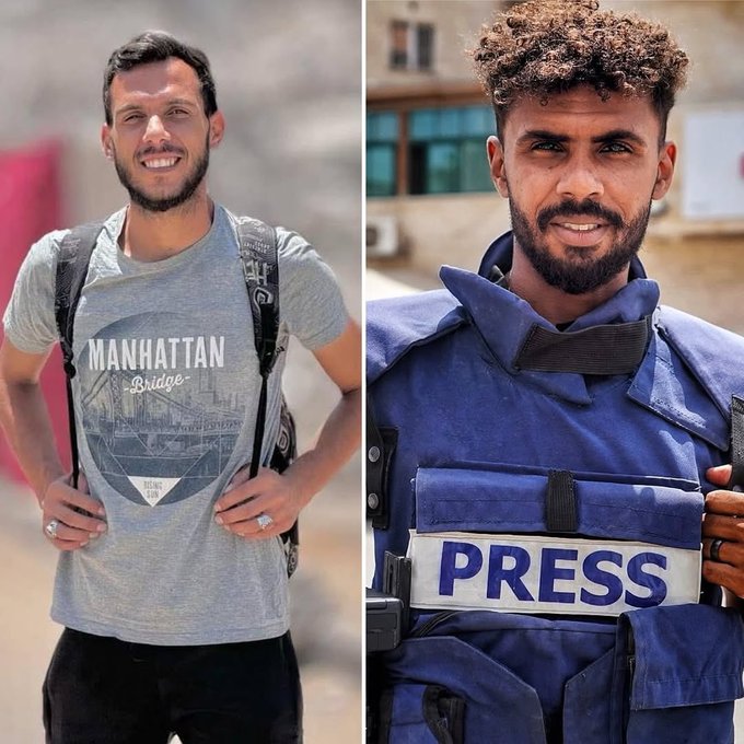Israeli forces killed journalist Tamer al-Zaanin (Left) and injured photojournalist Ibrahim Abu Ashiba (Right) while they were covering the abduction of Dr. Marwan Hams in Khan Yunis.