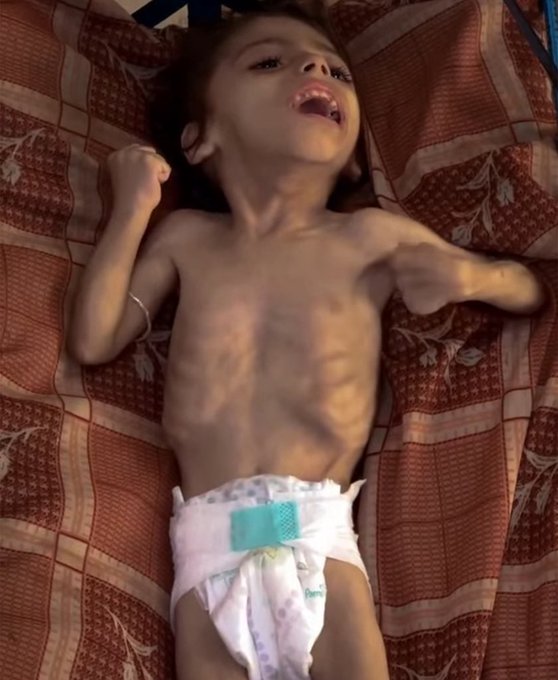 This is 9-year-old girl, Maryam Abdul Aziz Mahmoud Dawas who is suffering from severe malnutrition