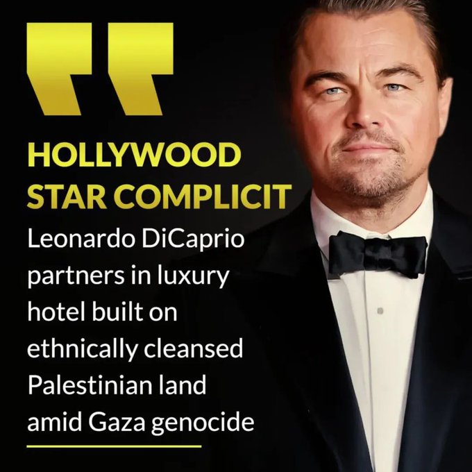 As Palestinians continue to be targeted and killed by Israel, Hollywood star Leonardo DiCaprio has reportedly invested a 10% stake through a branding partnership in a luxury hotel development at Herzliya Marina, on stolen Palestinian land, making him complicit in Israeli crimes.