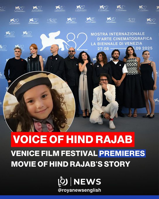 The Voice of Hind Rajab, a Gaza drama from filmmaker Kaouther Ben Hania, receives a rapturous reception here after its world premiere here at the Venice Film Festival, receiving a 21-minute standing ovation, the longest at the 82nd festival. Lots of sobbing and tears throughout. #Venezia82