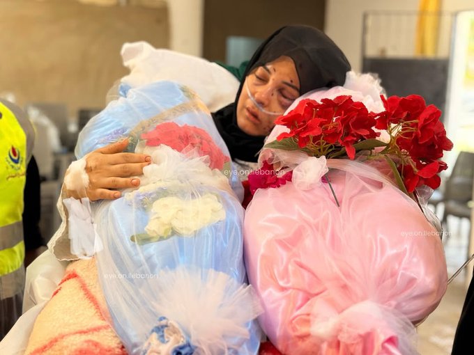 The final embrace.. A Lebanese mother cradles her twins, taken by Israel’s bombs.