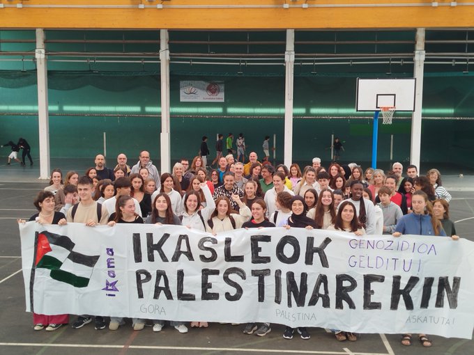 Ikasleen ekimenez Global Sumud Flotillaren aldeko elkarretaratzea egin dugu patio orduan ikasleok eta irakasleok.