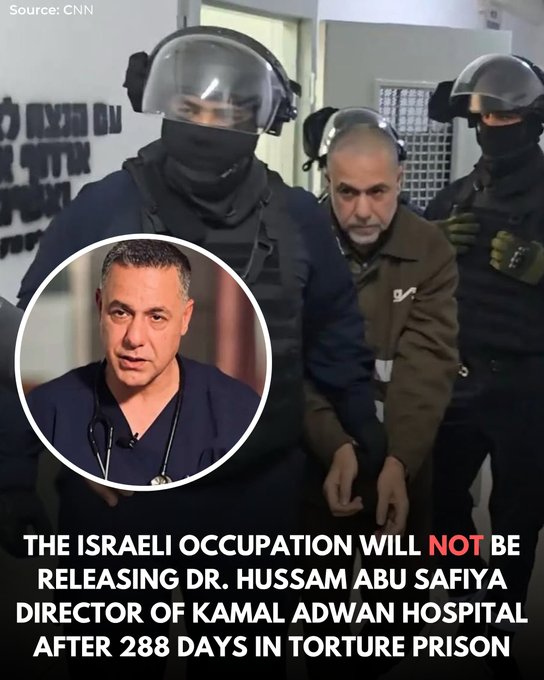 Dr. Hussam Abu Safiya, the Director of Kamal Adwan Hospital, has been in the occupation’s torture prisons for almost one year now and according to CNN, he will not be released during the hostage trade.