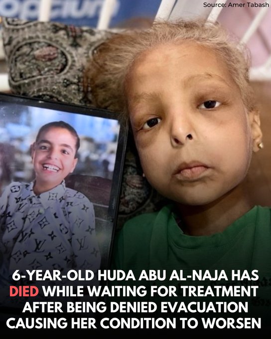 Six-year-old Huda Abu Al-Naja has died after being denied evacuation from Gaza for treatment. Suffering from severe malnutrition, Huda’s family spent their final days asking when she would be allowed to travel for care, a plea that went unanswered. Despite repeated appeals by medical workers, her transfer was delayed until it was too late. Her murder is not an isolated tragedy but part of a deliberate system of blockade that denies Gaza’s children access to medicine, hospitals, and survival itself. Thousands more remain in critical condition, waiting for help that may never come.