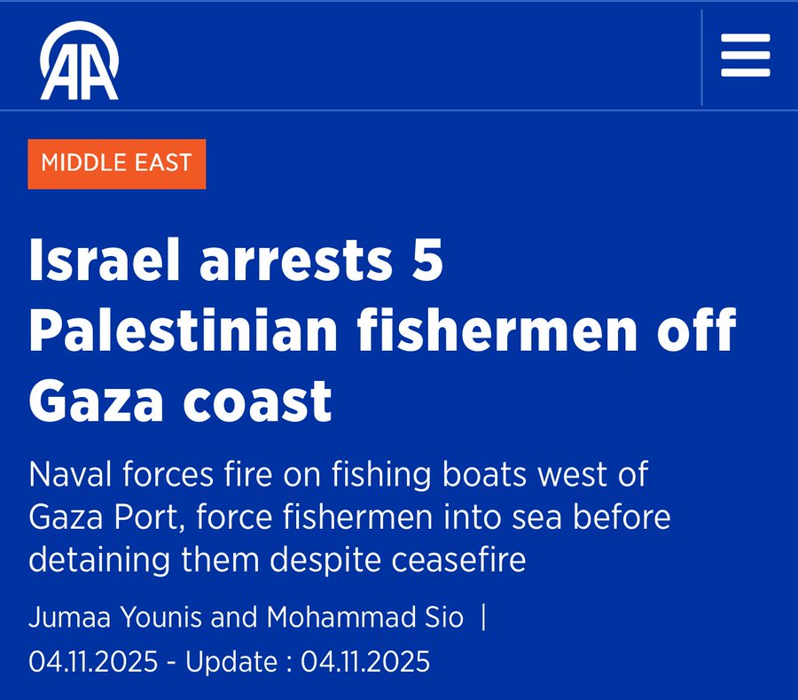 They’re arresting fisherman during a “ceasefire” because they want to control every calorie that enters Gaza. Another nonexistent story in Western media.