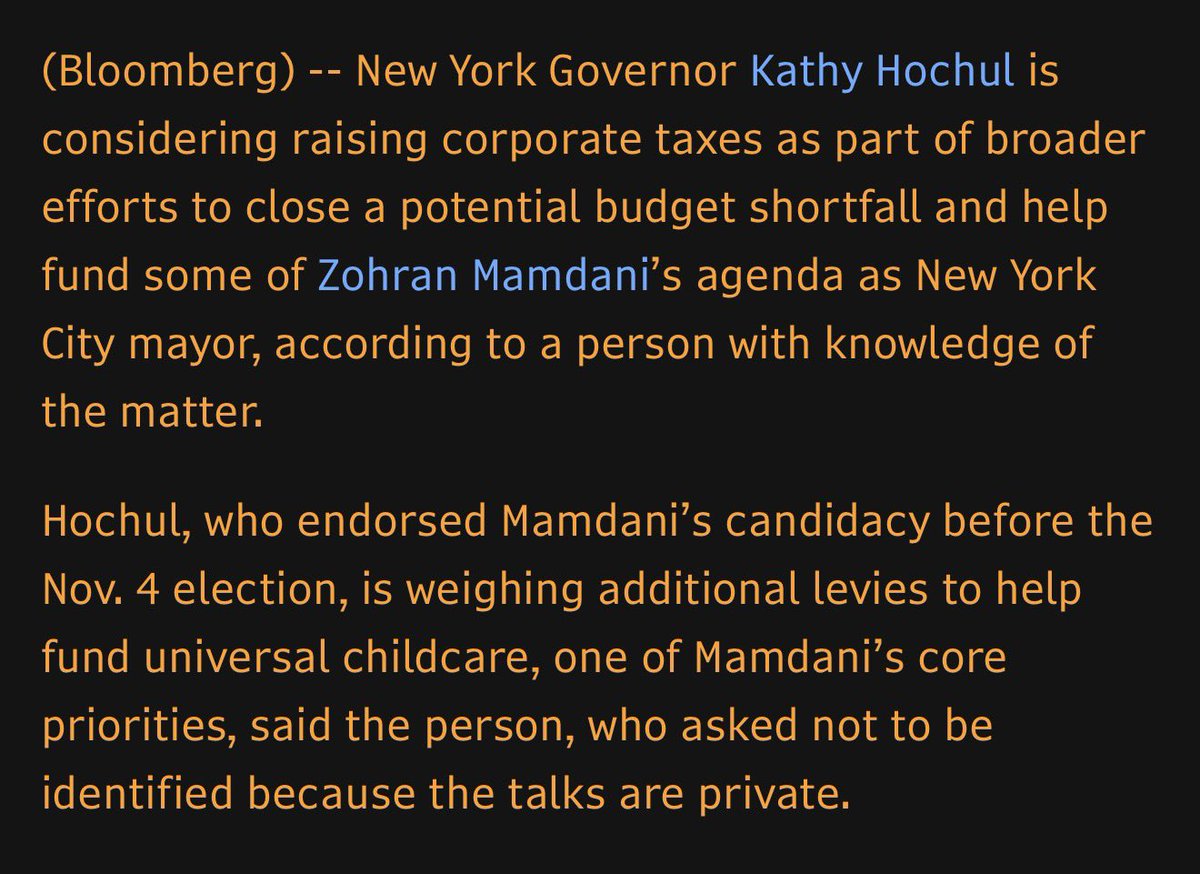 Bloomberg: New York Governor Kathy Hochul is considering raising corporate taxes as part of broader efforts to close a potential budget shortfall and help fund some of Zohran Mamdani’s agenda as New York City mayor.