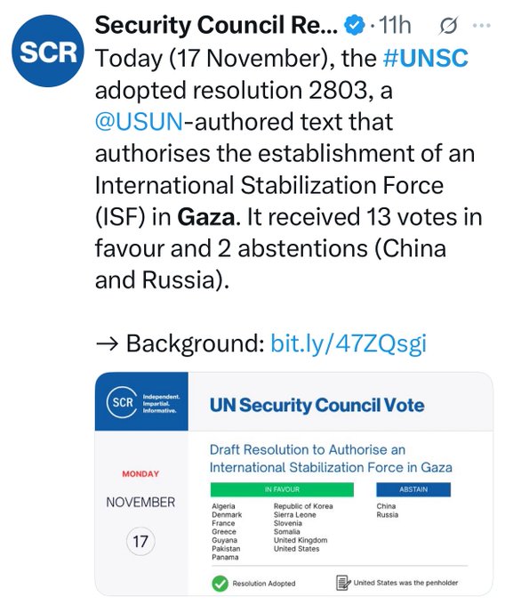 With its security-first, capital-driven model of foreign control, Res 2803 puts Gaza in the hands of a puppet administration, with the US as the new manager of an open-air prison, further crushing Palestine’s right to self-determination and any path to peace.