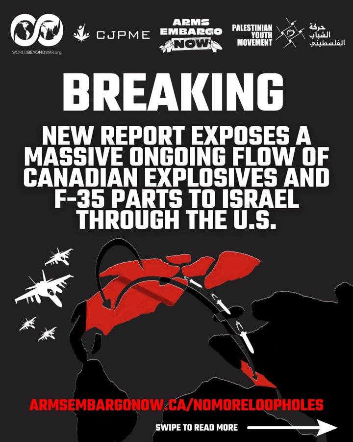 BREAKING: We’ve just launched a devastating new report exposing a massive weapons pipeline running from Canadian factories and ports to Israel through the U.S. We were honored to co-author it with @palyouthmvmt, @CJPME, & the Arms Embargo Now coalition. http://armsembargonow.ca/nomoreloopholes