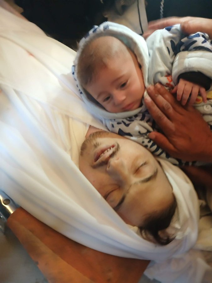 My son hugged his father for the last time after he died by Israel bombing in Gaza. R.I.P my husband.