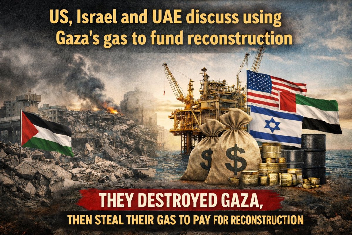 THEY DESTROYED GAZA, THEN WANT TO STEAL THEIR GAS TO PAY FOR RECONSTRUCTION The U.S., Israel, and the UAE are discussing using profits from Gaza’s offshore gas to fund reconstruction of what Israel destroyed.