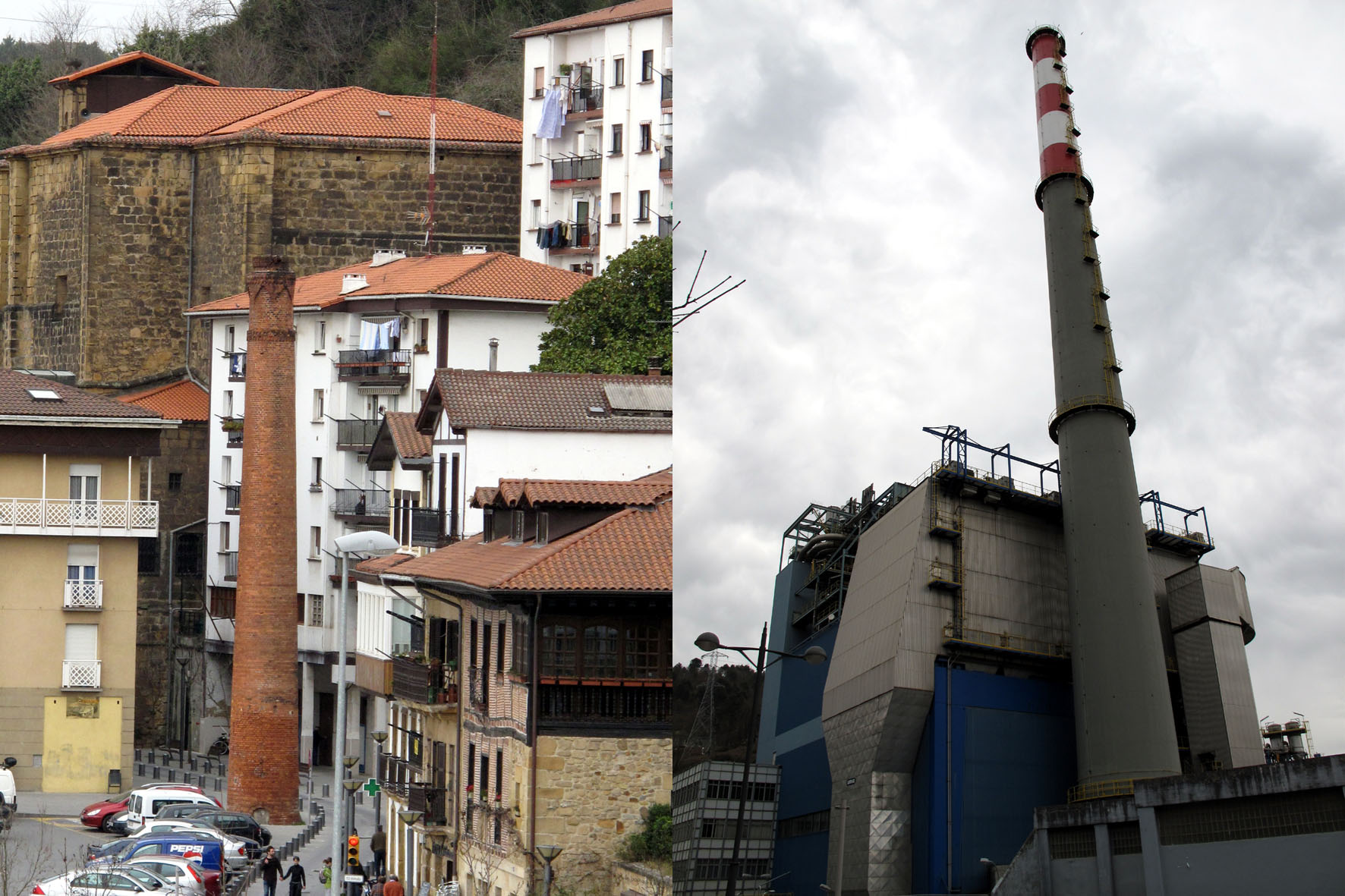 - Antzinako tximiniak Donibaneko espazioan dirau. Alboko argazkian zentral termikoaren ke-hodia.